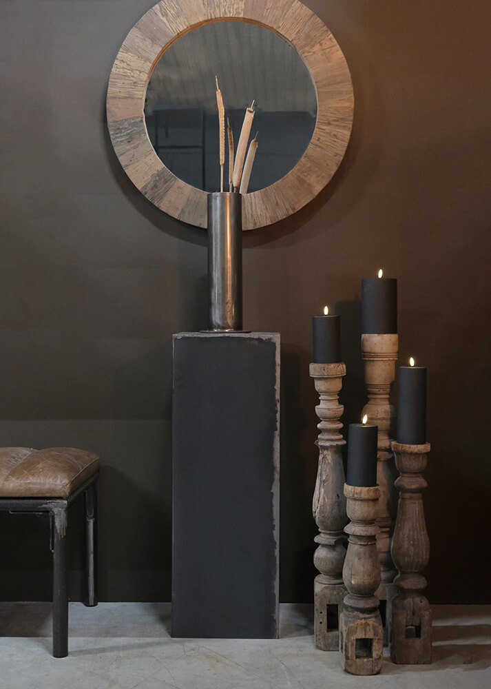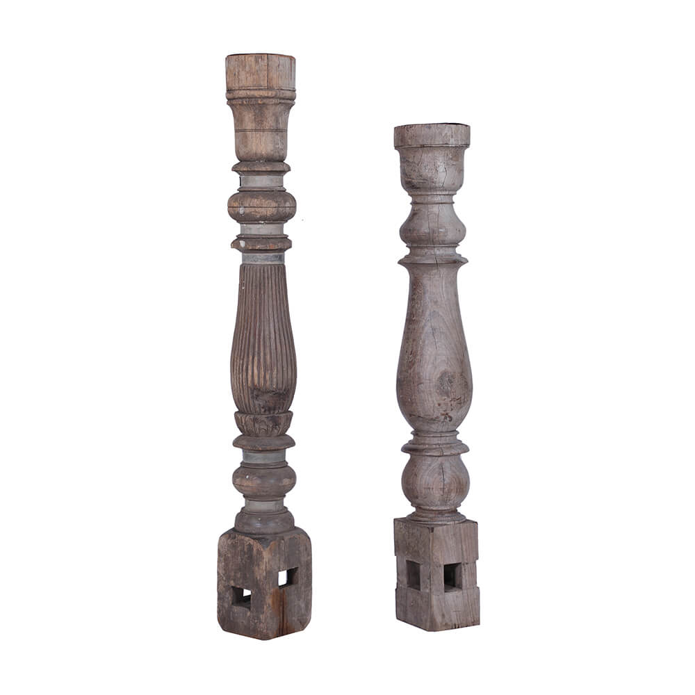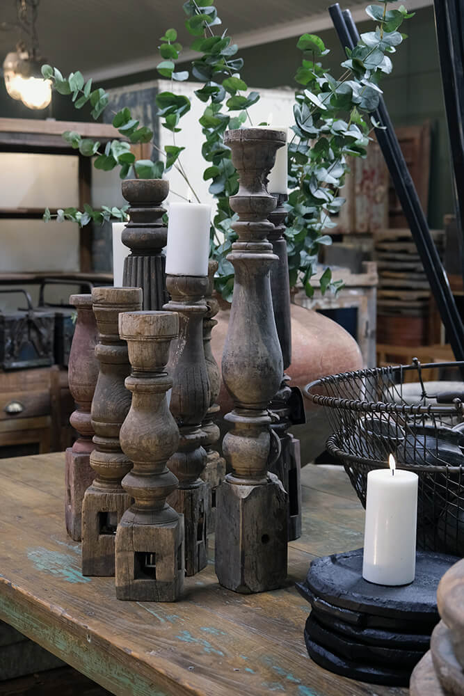 Unikke lysestager lavet af gamle bordben i XL-størrelse. Disse stager skiller sig ud med deres smukke udskæringer og voluminøse design. Med deres XL-størrelse tilføjer disse lysestager en iøjnefaldende atmosfære til ethvert rum. Placer disse lysestager som centrale stykker fremtrædende steder i dit hjem. De vil med garanti tilføre en ekstraordinær skønhed og stemning til din indretning. Måler fra 70 - 90 cm og er alle forskellige i udtryk.