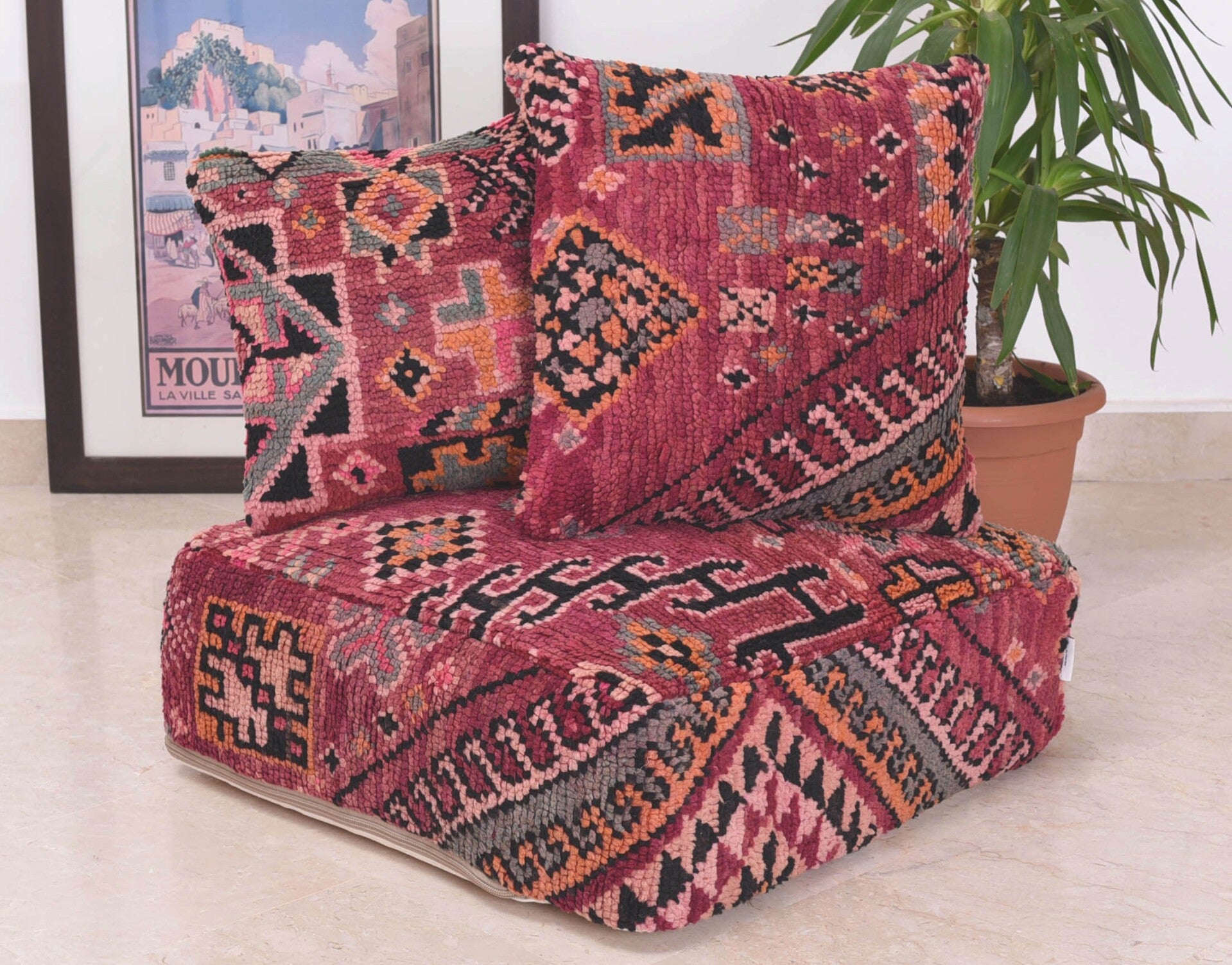 Vintage pude af håndknyttet tæppe fra Atlasbjergene i Marokko str. 36x36 cm