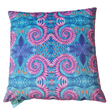 Lækker designerpude i blød velour og skønne mønstre og farver. Et sikkert hit i sofaen og på terassen i størrelse 45x45cm. Puden leveres inklusiv fyld.