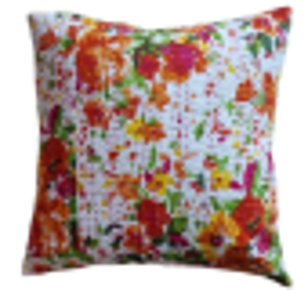 Indisk pude i Kantha quilt - Smuk sommerlig pude i Kantha quilt str. 40x40 xm. Bagsiden er ensfarvet. 100% Bomuld.