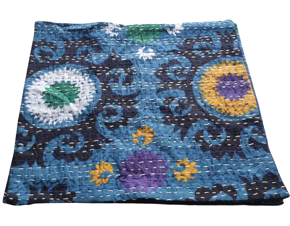 Indisk pude i Kantha quilt - Smuk sommerlig pude i Kantha quilt str. 40x40 xm. Bagsiden er ensfarvet. 100% Bomuld.