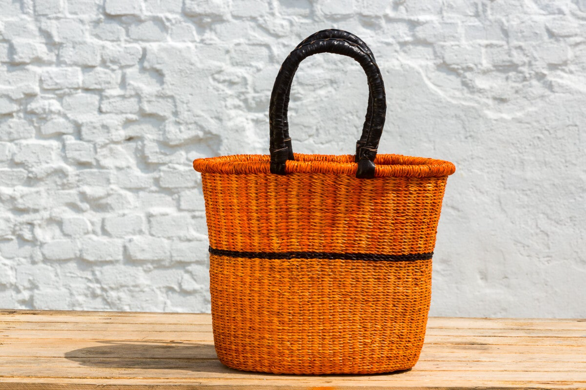 Mellemstor håndflettet taske fra Ghana - fåes i manger farver - vælg venligst i dropdown menu. ca. mål bredde 43cmx højde 30cm .