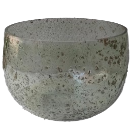 Vase/ Skål i patineret grøn glas. Skålen fremstår med en smuk krakkeleret overflade.