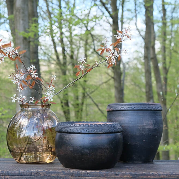 Denne lerkrukke med små unikke detaljer i toppen er en fin dekoration i sig selv, og med en plante i vil det både skabe hygge og stil i ethvert rum i hjemmet. Krukken er ikke vandtæt, men kan fint bruges til planter hvis du laver et plastikindlæg eller stiller en glasindsats i bunden. H:17 cm x W:28 cm x D:28 cm