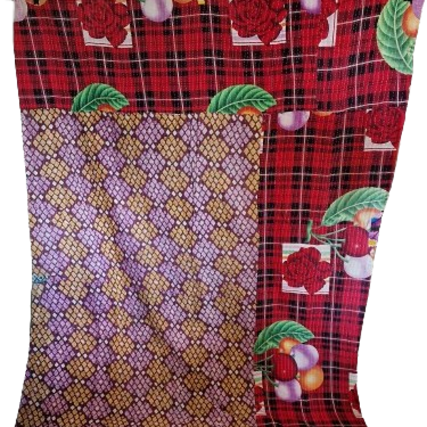 Katha quilt plaid fra Indien. Plaiden er sammensat af brugte Indiske sarier så de to sider er forskellige, og efterfølgende syet med de karakteristiske kantha sting. Denne plaid er lavet af stof i sprudlende stærke farver. Den er ikke sømmet i enderne.