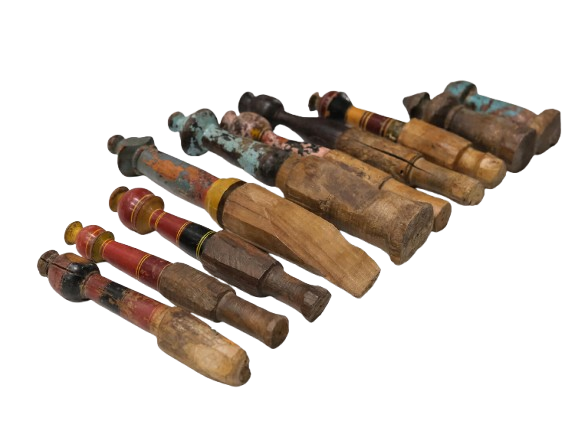 Original gamle og meget dekorative træpinde med et sjovt og unikt look. Træpindene har været brugt som dekoration på gamle indiske møbler og er alle forskellige i farver og udskæringer. Brug dem som deko og giv indretningen et stemningsfyldt og unikt præg.