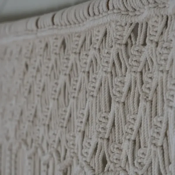 Makramé er en ældgammel håndabejdsform der kan spores tilbage til babylonerne. Den havde sin største udbredelse i den Victorianske periode men kendes især for sin popularitet i 1970´erne, hvor den sættes i forbindelse med hippiernes bohemeindretning. Makramè har fået et comeback inden for de sidste par år. Stilen er ægte Bohéme, disse vægtæpper vil også klæde en moderne indretning.