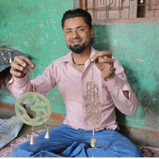 Vindspil Hamsahånd i metal med 1 klokke. Anvendes inde eller ude, f.eks i et vindue, på altan eller terrasse, hvorfra man kan nyde den smukke klang fra klokkerne. måler ca. h30xb15cm. Vindspillene er fremstillet i Indien af genbrugsmetal og lakeret for at beskytte mod rust. Dette er et Fairtrade produkt