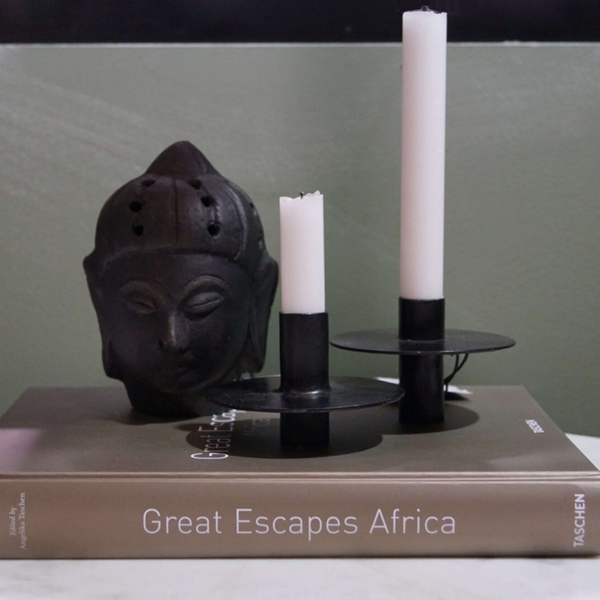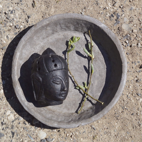 Fint lille detaljeret og udtryksfuld Buddhahoved i ler. Buddhahovedet har en mørk farve med patina. Stil Buddhahovedet sammen med andre skønne dekorative nipsting og skab en personlig stemning i indretningen.