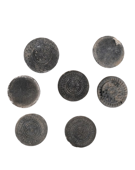 Disse små, runde kikseforme i stenmel emmer af historie og håndværk. Oprindeligt brugt til at forme smukke, mønstrede kager og kiks i traditionelle køkkener. Nu er de klar til at pryde dit hjem som dekorative elementer med masser af patina og personlighed. Hver form er udskåret i solid sten og bærer sit helt eget ornamenterede mønster. Fra stjernemotiver til blomstergitter, og ikke to er ens. De fungerer perfekt som små skulpturer, underlag, dekorationer på væggen eller som samtalestarter på sofabordet. En hyldest til det ægte, det slidte og det smukt uperfekte.