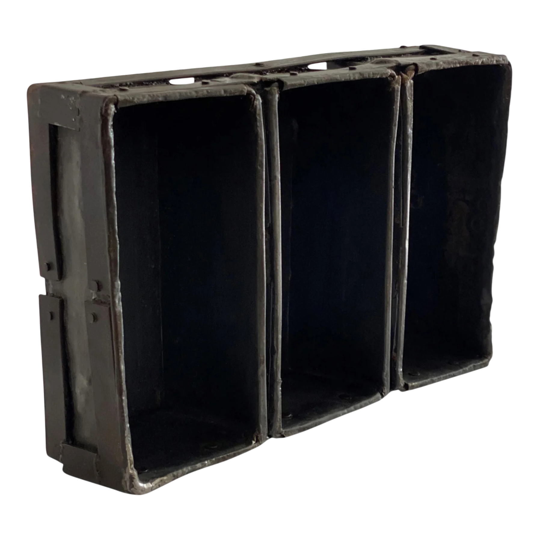 Praktisk og rå lille hylde lavet af 3 gamle kageforme. Brug denne lille hylde i køkkenet, på badeværelset eller til opbevaring af bestik, sterinlys eller lign. Vil du indrette din bolig med sjæl og personlighed, så er denne hylde et oplagt valg.