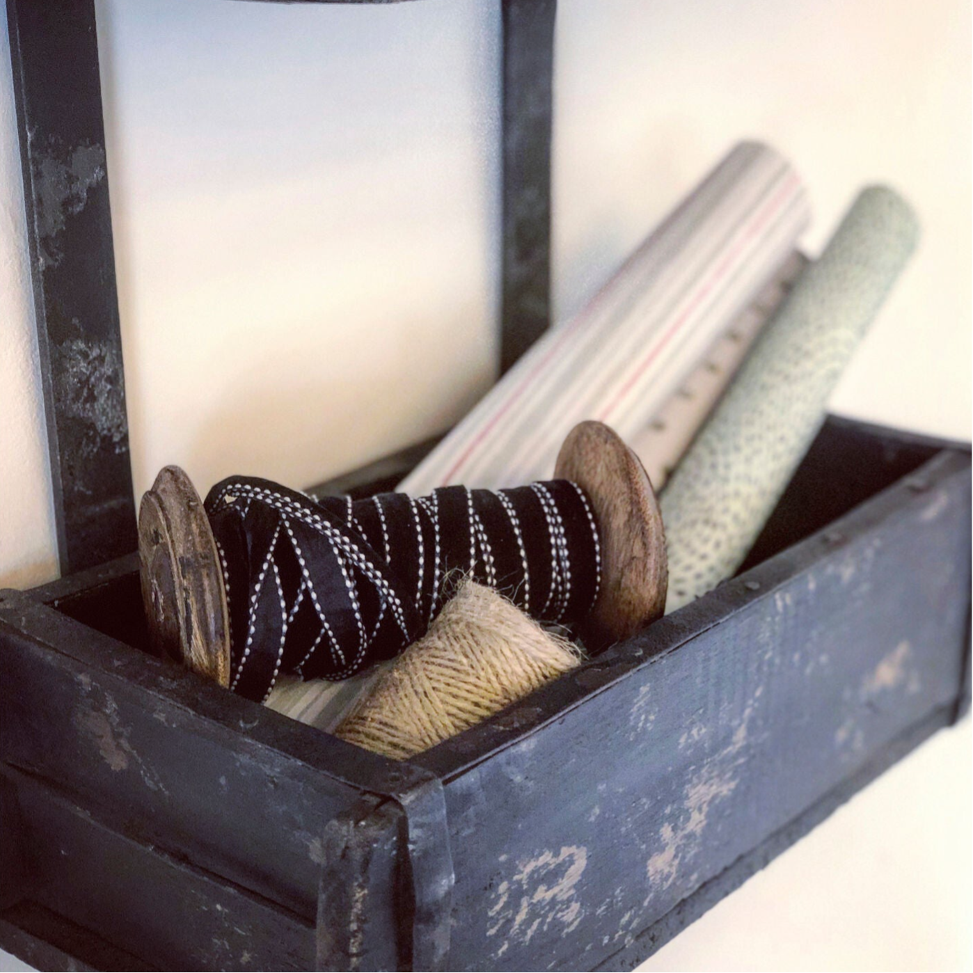 Smart lille hylde af gamle indiske murstensforme med sort finish. Formene er samlet med sort jern og lige til at hænge op i badeværelset, køkkenet eller entre, til opbevaring og dekoration.