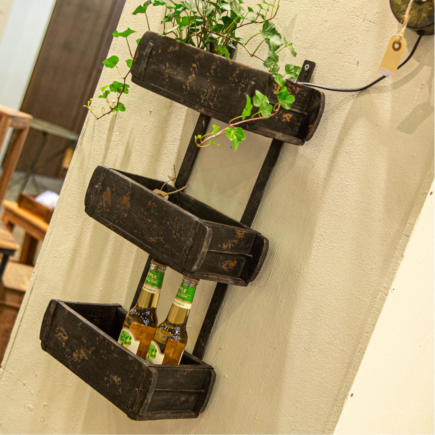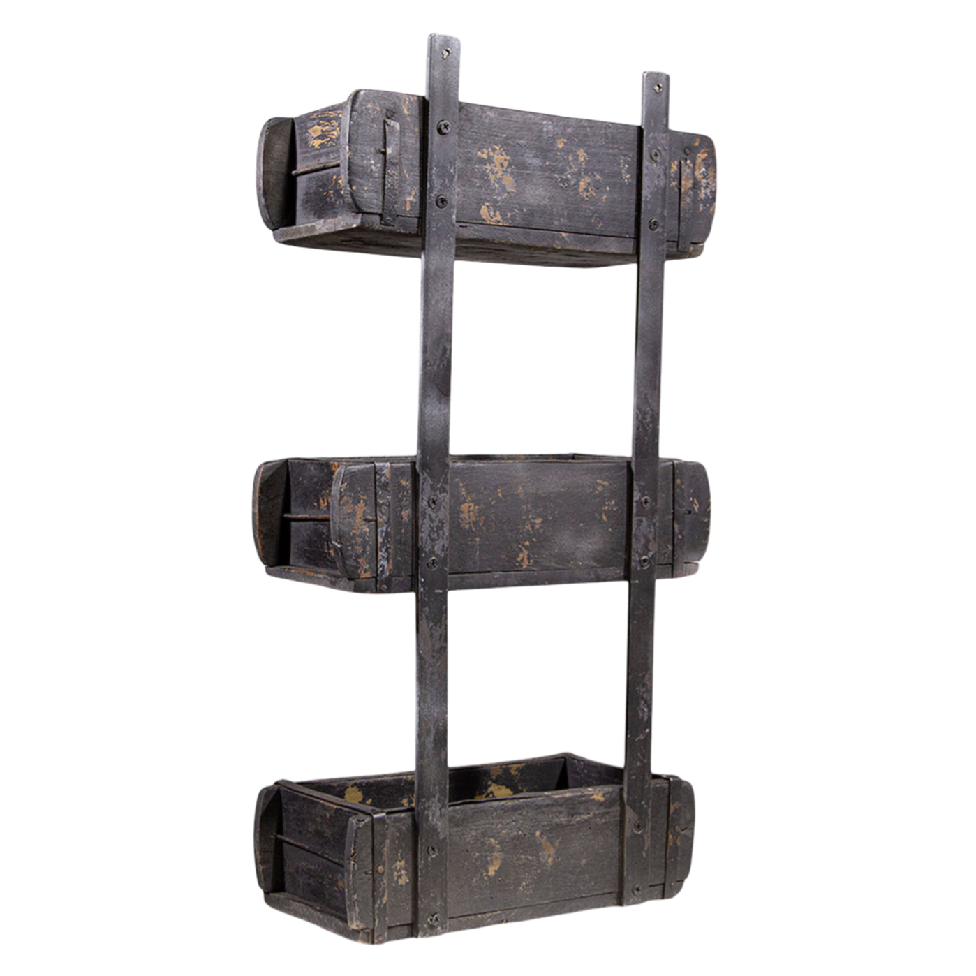Originale gamle murstensforme sat sammen med metal-bånd til reol. Skøn og praktisk over alt hvor du vil give rummet eller terrassen et personligt præg.