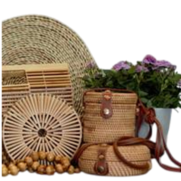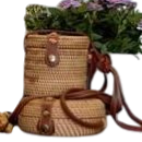 Håndlavet cylinder taske i flettet rattan. Tasken er foret med stof indeni og måler D13/H13cm.