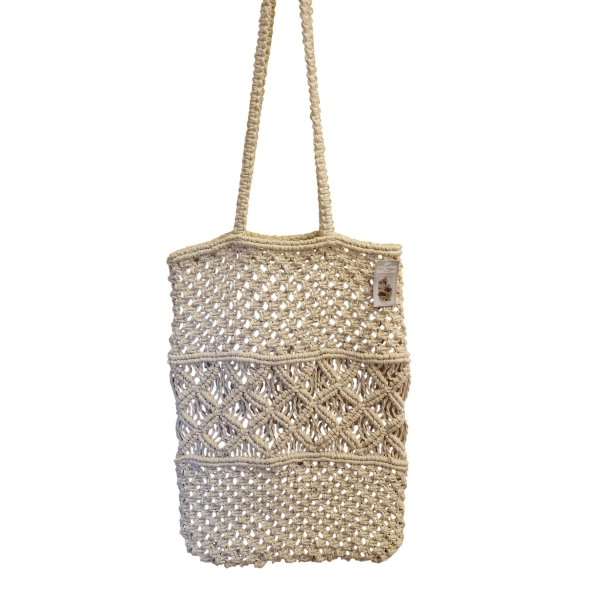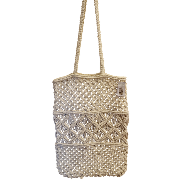 Fint knyttet sommerligt net til lette indkøb eller tilbehør til strandturen. Mål 43x31 cm. skulderstrop 36 cm