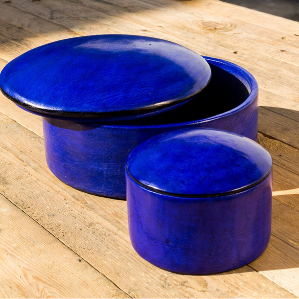 Håndlavede læderbokse i mørkeblå