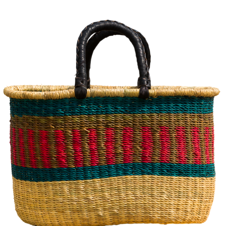 Skønne håndflettede shopperkurve fra Ghana - fås i 12 farver - 1 størrelse Bemærk at de traditionelle kurve er assorterede og ser ikke nødvendigvis ud som afbildet.