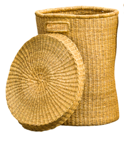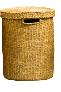 Skøn håndflettet vasketøjskurv fra Ghana - her med praktisk låg i natur. Den måler H48 x D 38cm